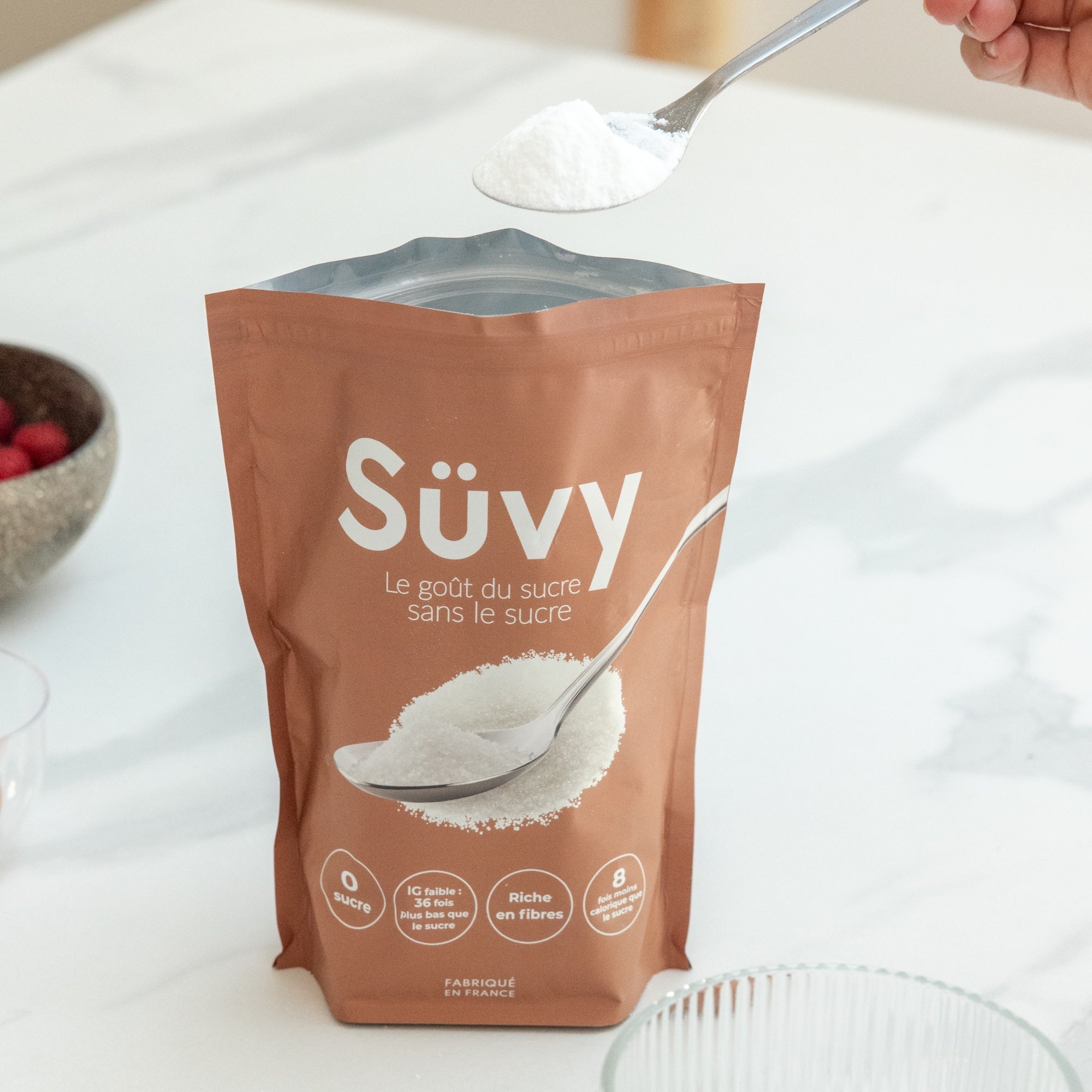 100 % naturel, sans calorie vide, sans pic glycémique et compatible avec les régimes diabétiques, IG bas et cétogènes, Süvy reproduit toutes les propriétés du sucre (goût, texture, caramélisation) sans en avoir les inconvénients.