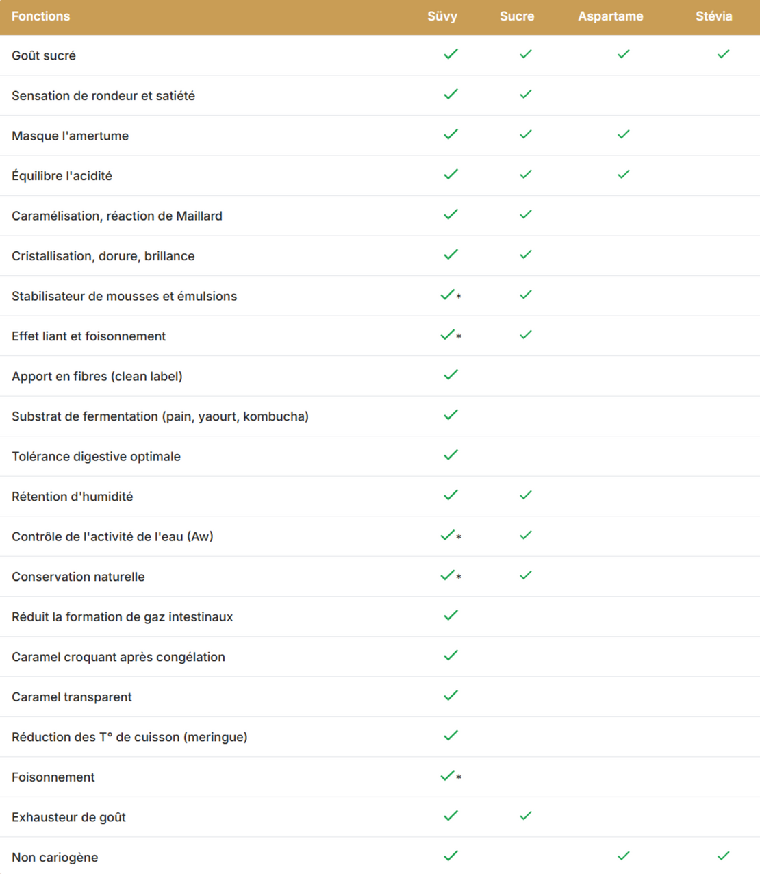 Son goût et sa capacité à remplir toutes les fonctionnalités du sucre.