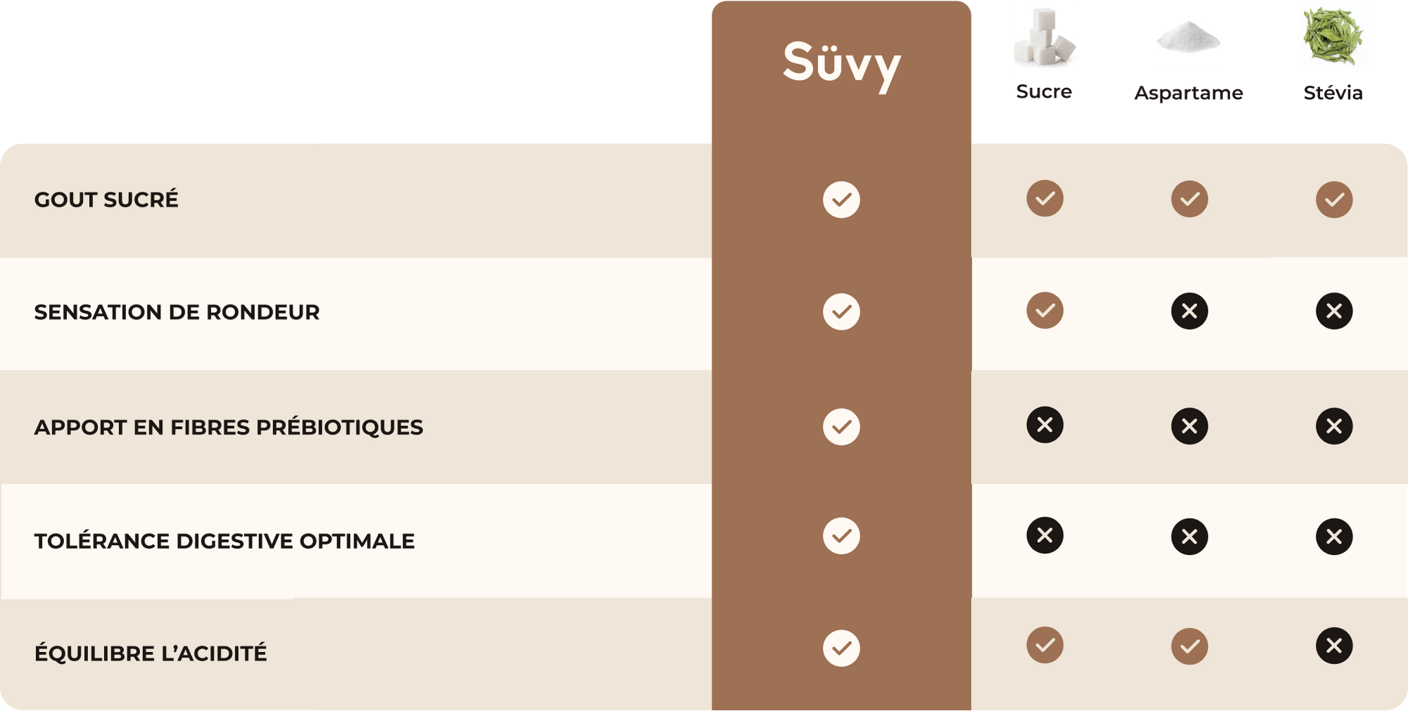 Même plaisir, zéro compromis : Süvy remplace le sucre, pas le goût.
